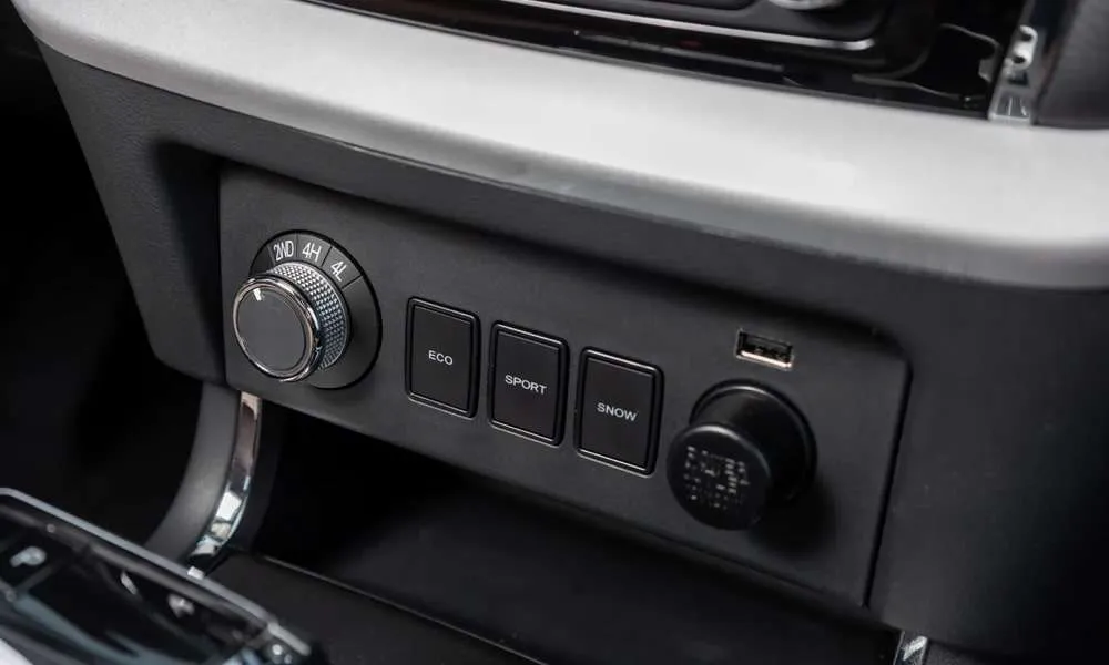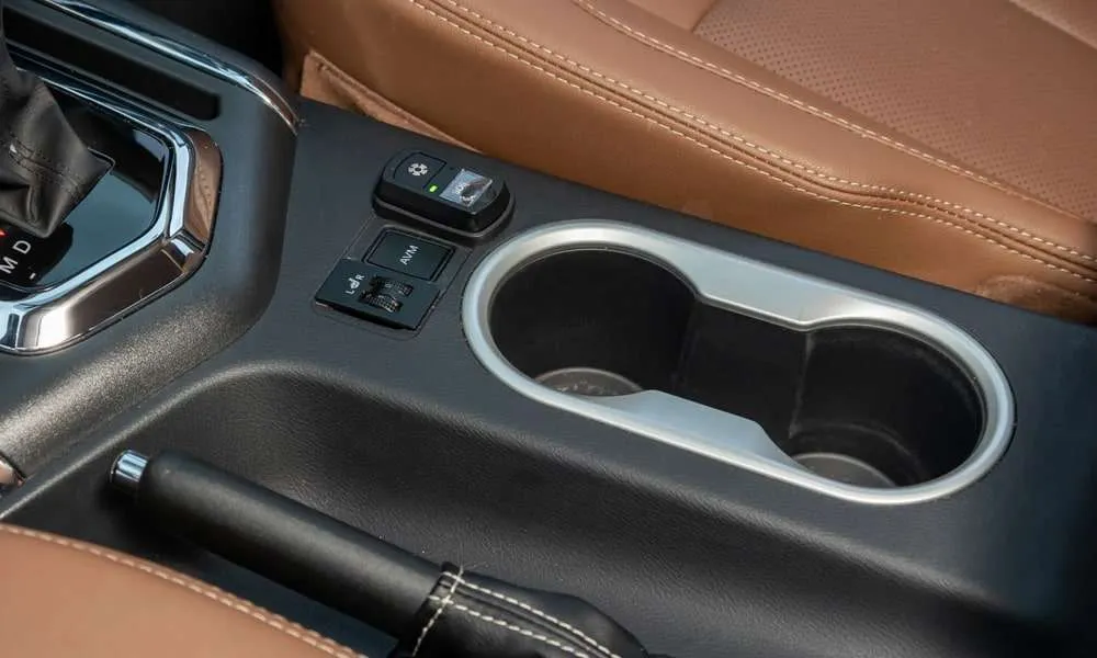 - Центральная консоль черного цвета с декоративными вставками