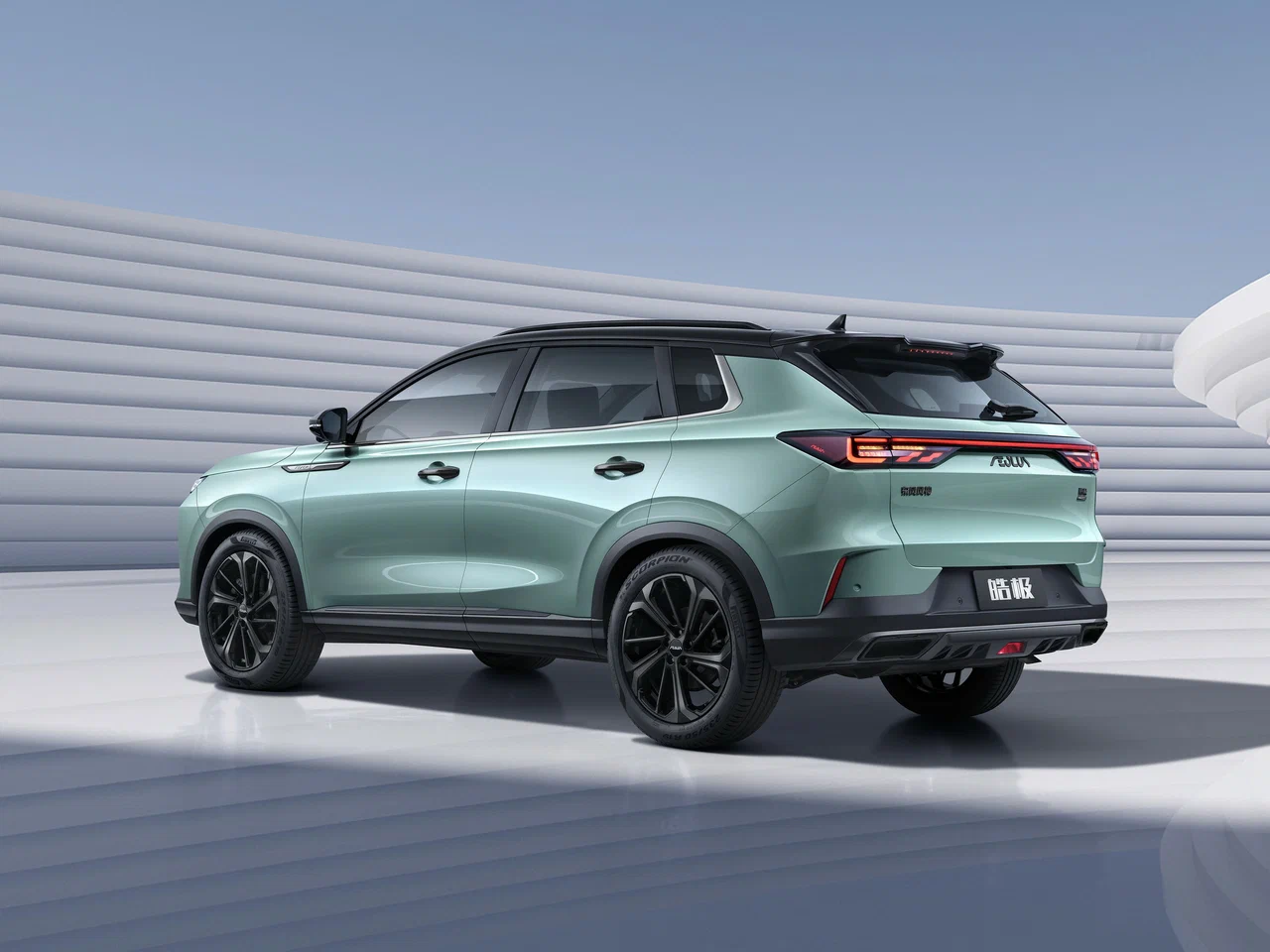 - Сплошная светодиодная полоса спереди с логотипом + светящийся логотип