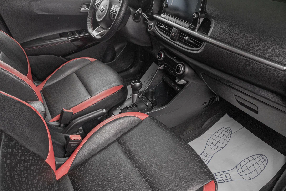 - Интерьер с отделкой искусственной кожей, с красными вставками